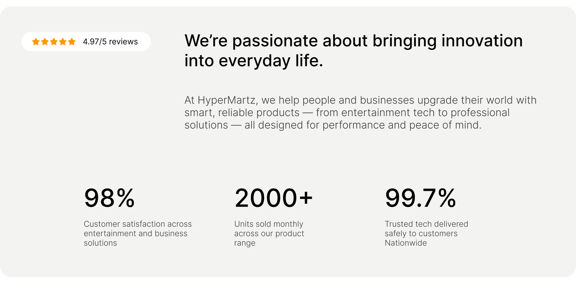 I ordered from HyperMartz for the first time and wasn’t expecting the delivery to be this smooth. Product quality is top notch, exactly as described. Sabse bari baat ye hai ke service honest hai, koi cheap quality ka saman nahi bhejte. Highly recommended!